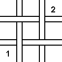 Come up at 1 and go down at 2 (or vice versa). If you start your X's the other way, like "\", then...