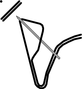 Take the thread coming out of o and lay it -on the surface- of the work. Put your finger at # on the two threads and hold them to the surface of the work. The threads should be lying from o to #, crossing x. Imagine they are two golf clubs lying parallel to each other on either side of the cup (the "cup" in this analogy is x).